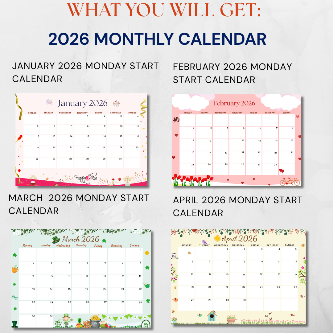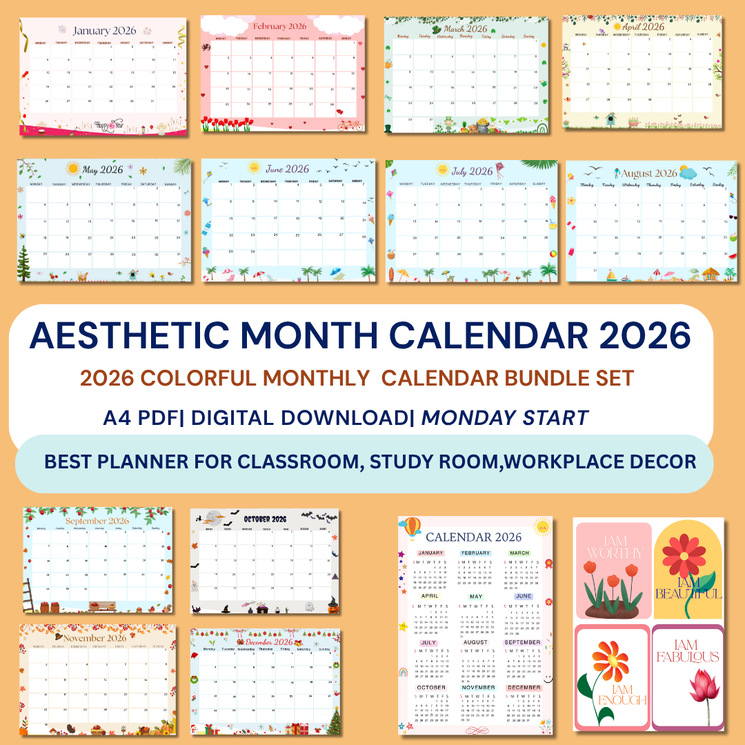 Wanted a lovely 2026 calendar? Embrace the 2026 New Year with our Artistic Lovely Printable Monthly Calendar, covering January through December. Add a touch of positivity and inspiration to your daily planning.